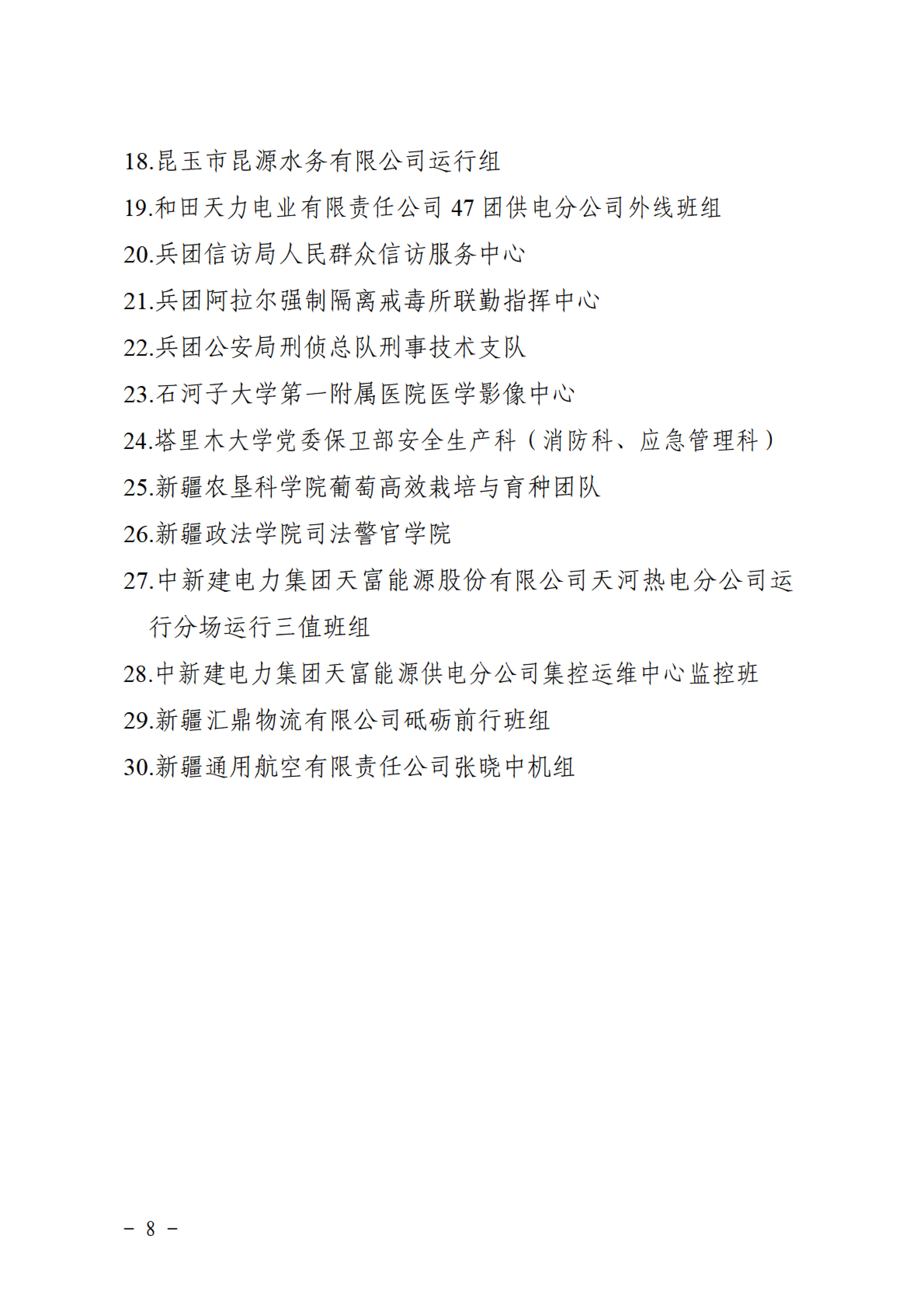 为表彰先进、树立典型,进一步增强新时代工人阶级的自豪感和使命感,营造劳动光荣、知识崇高、人才宝贵、创造伟大的社会风尚,兵团总工会决定,授予新疆塔里木农业综合开发股份有限公司等30个单位兵团维稳戍边劳动奖状,授予谢小云等40名同志兵团维稳戍边劳动奖章,授予浙大邵逸夫阿拉尔医院急诊科等30个班组(科室)兵团工人先锋号。